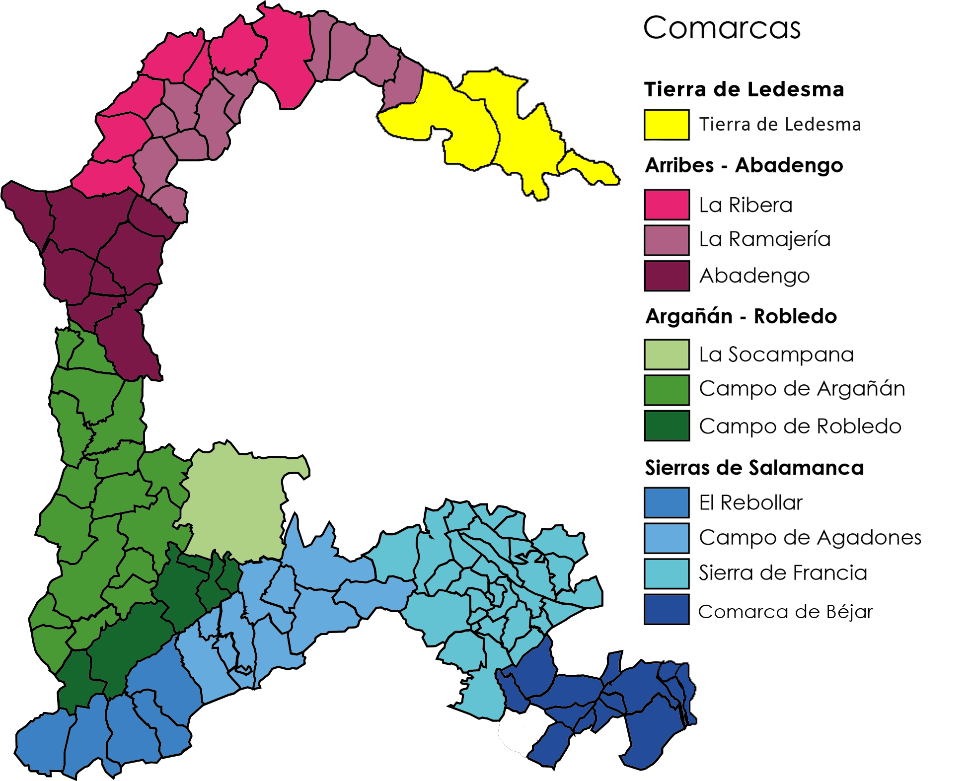 El territorio del futuro Geoparque de Salamanca englobará el término municipal de 110 municipios de la provincia de Salamanca, que representan a 11 sub-comarcas históricas: