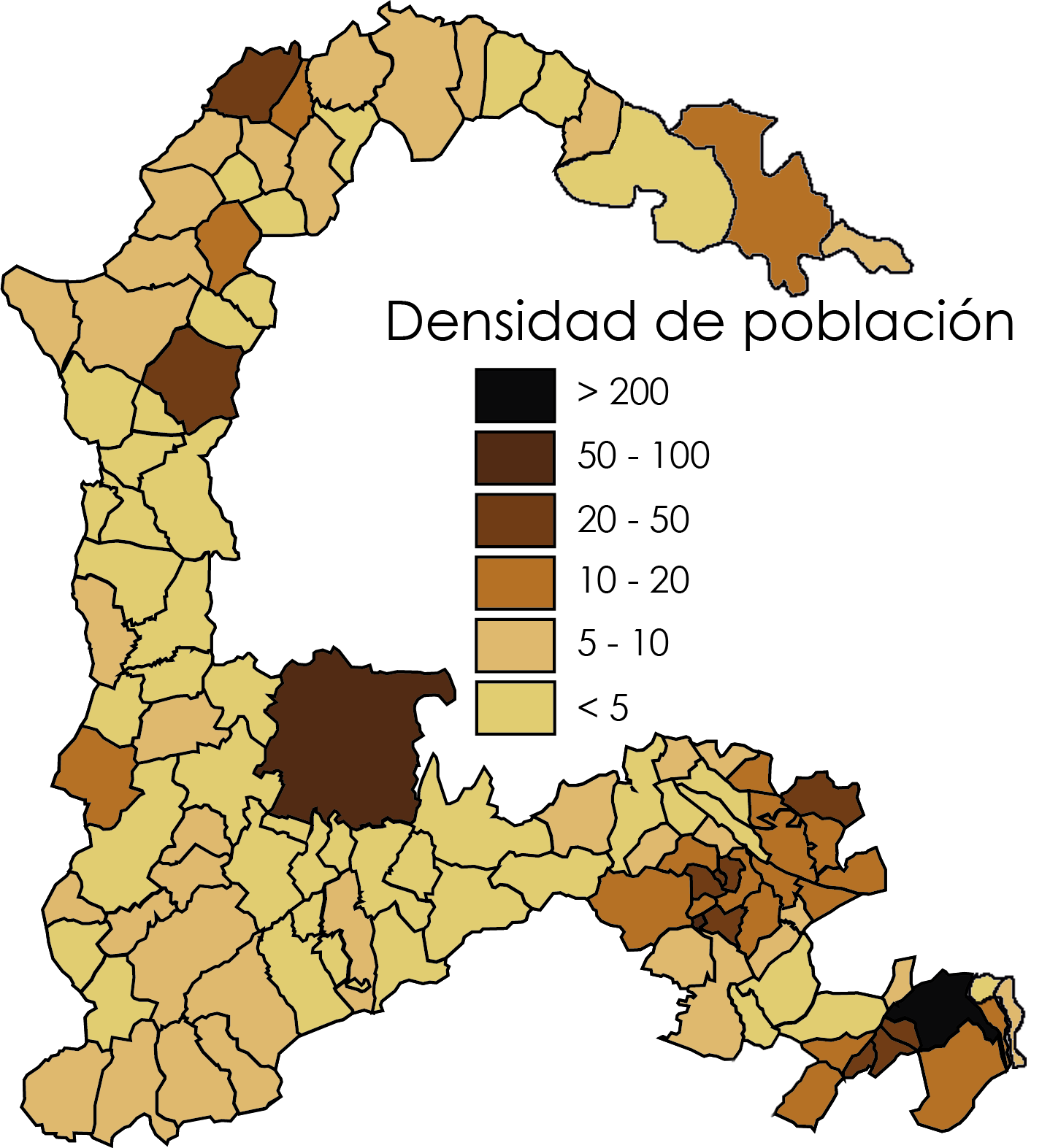 La densidad de población es de 12,33 habitantes por cada kilómetro cuadrado, que comparado con la media española de 95,26 hab/km2, evidencia los problemas de despoblamiento a los que este territorio se enfrenta.