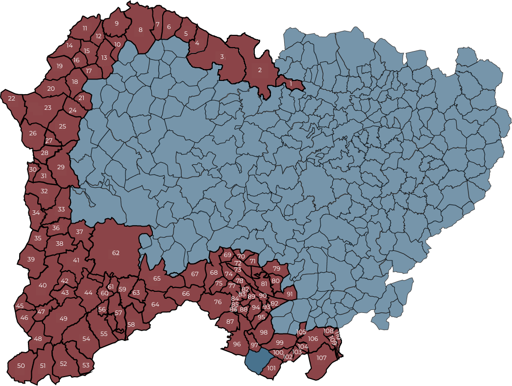 Estos municipios suman 4.228,04 kilómetros cuadrados (422.804 hectáreas) en los que viven 52.174 personas, según el censo del 1 de enero de 2023, de las cuales el 49,51% son mujeres.